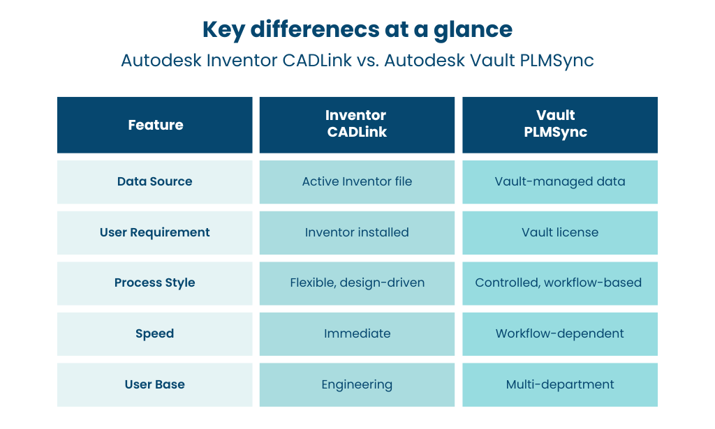 Choosing between Autodesk Inventor CADLink and Autodesk Vault Professional PLMSync depends on how your team operates.